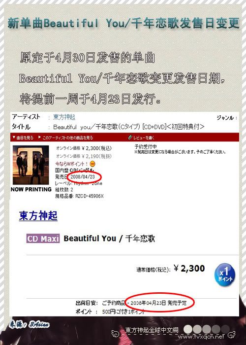 [消息] 單曲Beautiful You/千年戀歌變更發售日期