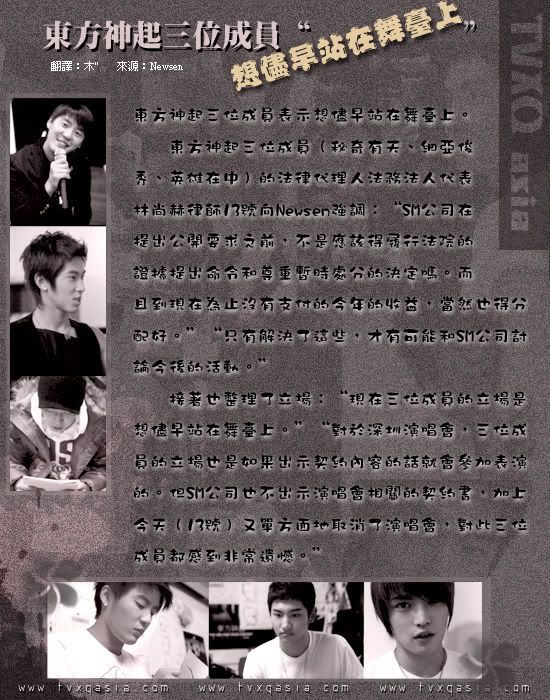 13日發表聲明:“現在3人的立場都是希望早日站上舞臺,深圳演唱會也是,只要SM對3名成