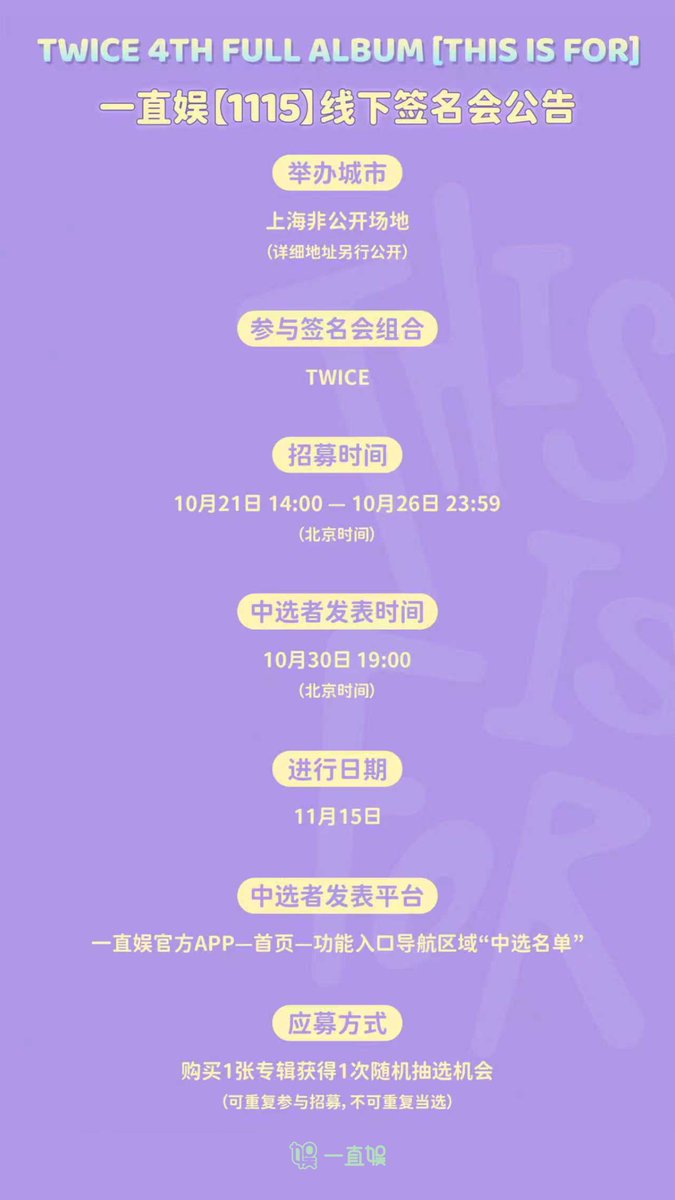 TWICE 4TH FULL ALBUM "THIS IS FOR" 一直娛[1115] 面對面簽名會公告