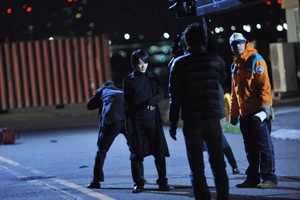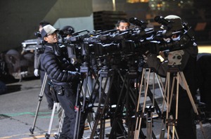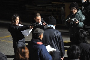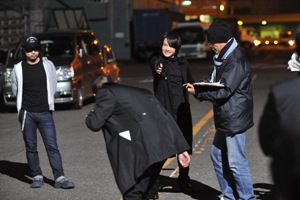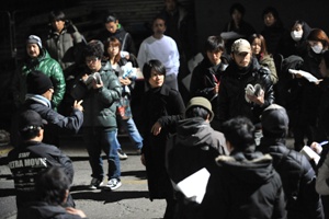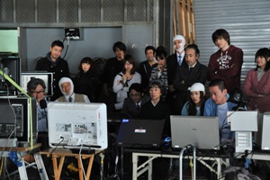 タイムスライス撮影準備中。堤監督「風で髪や服が動かないように、気をつけて!」